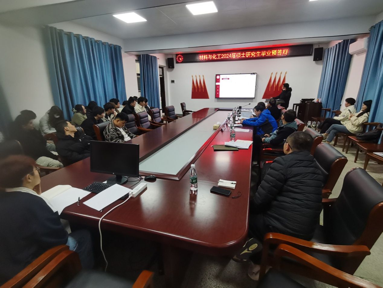 太阳成集团122ccvip于2024年3月13日下午3点在化材楼105会议室举行2024届材料与化工硕士研究生学位论文预答辩。预答辩由许志锋教授、刘梦琴教授、陈满生教授、李俊华教授和孙俊彬副教授任评审小组专家,朱小明博士担任预答辩秘书。21级硕士研究生均参加预答辩,部分研究生导师、在读硕士研究生参与旁听。