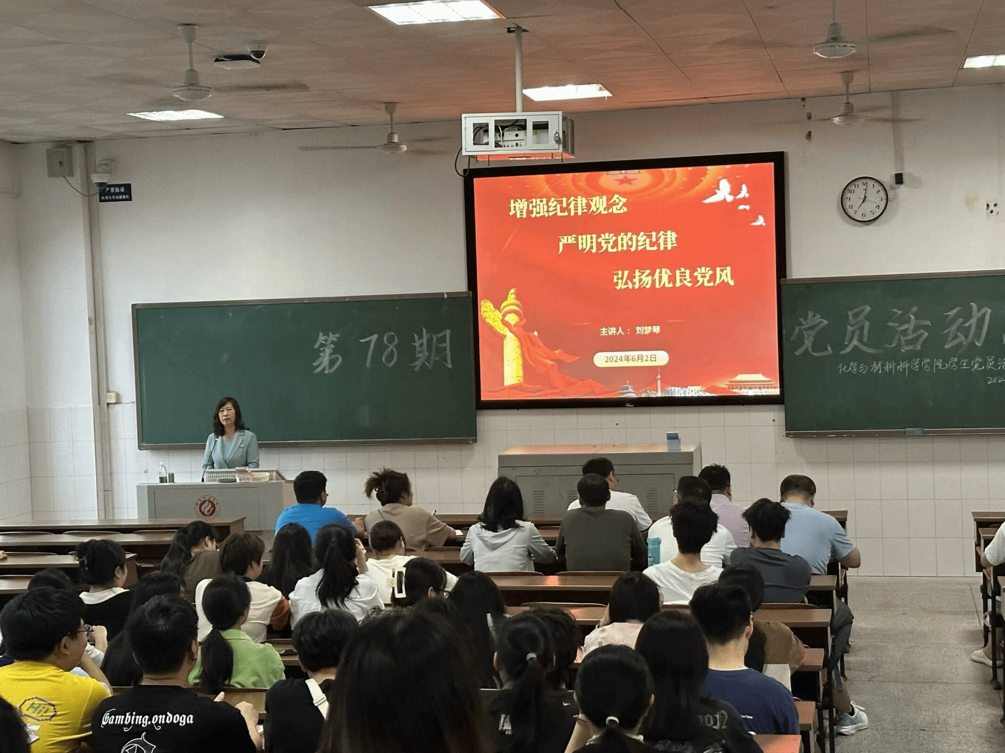 2024年6月2日晚7:00,公司党总支书记刘梦琴在行知楼602教室以《增强纪律观念 严明党的纪律 弘扬优良党风》为题党员同志入党积极分子上了一堂生动的党课。