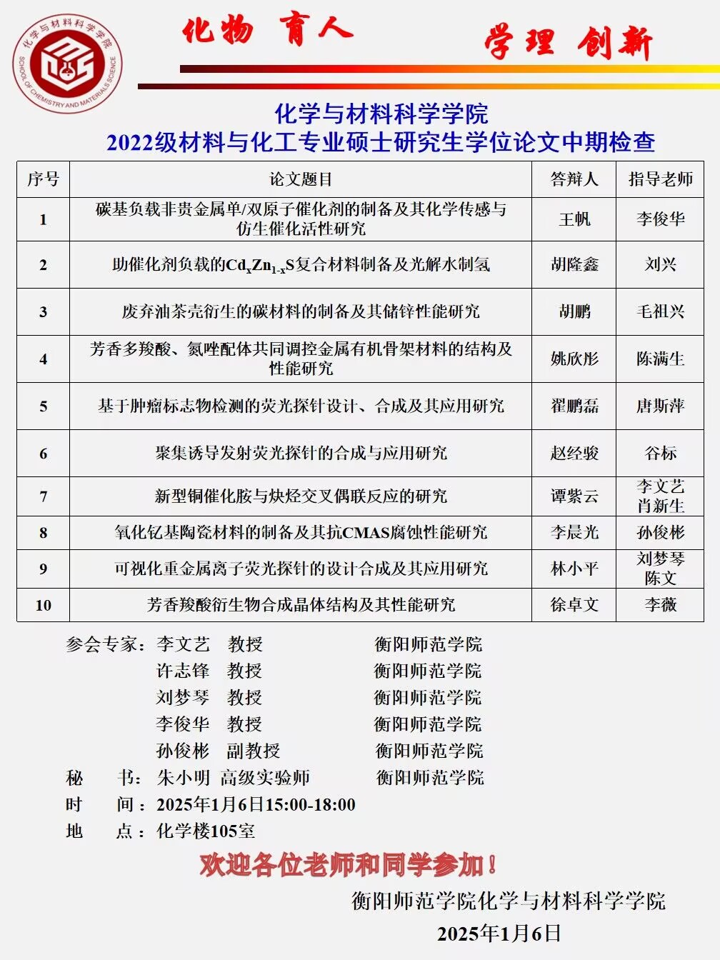 ​太阳成集团122ccvip2022级材料与化工专业硕士研究生学位论文中期检查