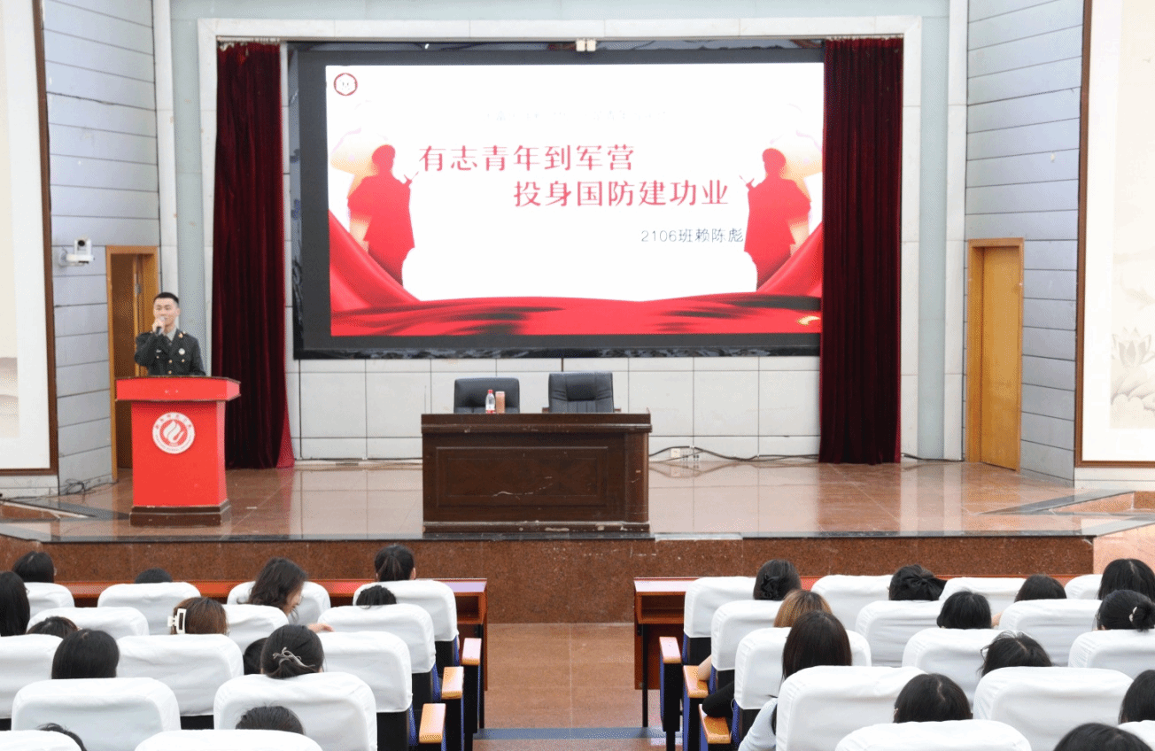 大会分为两个环节:第一环节是观看求职避“坑”员工安全就业指导课视频;第二环节是征兵宣传大会。《求职避“坑”指南——员工安全就业指导课》视频以多个案例的形式,揭开了毕业生在实际求职中可能遇到的“套路”,为了避免毕业生落入骗子的圈套,视频邀请了就业指导专家就“如何安全就业”的问题为毕业生指点迷津。在征兵入伍宣讲中,来自21级应化1班退伍军人赖陈彪结合自身入伍两年的经历,向毕业生分享了他的军营生活以及入伍感受,宣传了国家征兵入伍相关政策,他号召毕业生们在守护万家灯火中实现人生价值。