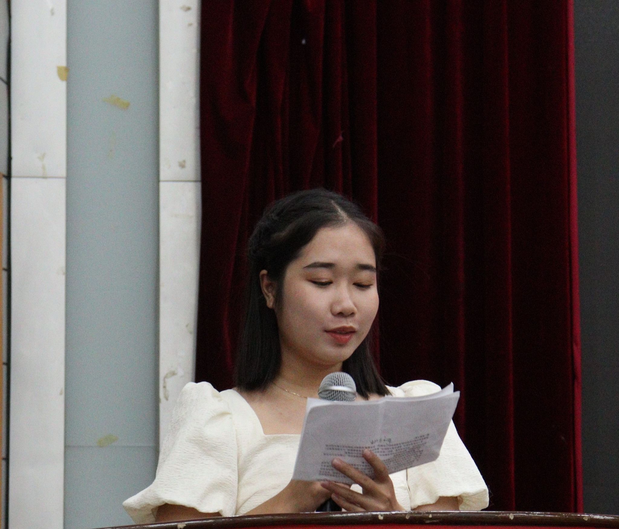 教师代表陈文老师与同学们分享了自己对老员工活的深刻感悟:一是要做一个有道德的人,大学不仅仅是学习知识,更是要修炼自己的德行;二是要学会规划生活;三是要做一个内心强大的人。老生代表潘蕊向同学们分享了自己对老员工活的心得体会,她提醒同学们要珍惜时光,以饱满的精神状态,严谨的学习作风去完成大学四年的学业。2304班彭雅琴同学作为新生代表发言,与同学们分享了祖辈和父辈用自己的力量传承家乡文化的故事,她立志要回到家乡用教育去振兴家乡,让青春之花绽放在祖国教育最需要的地方。