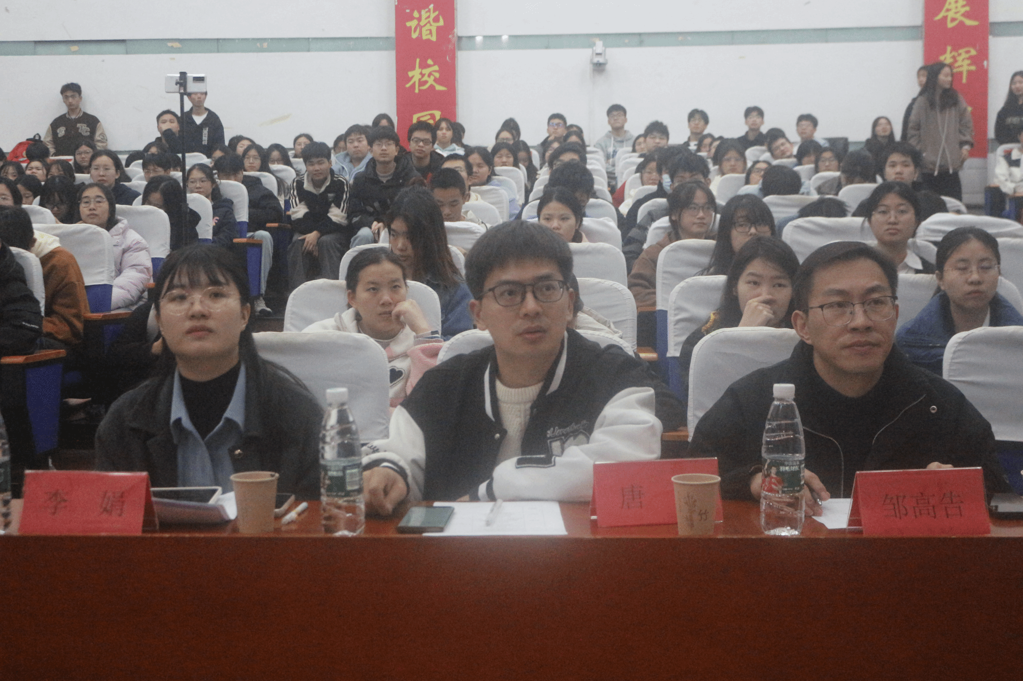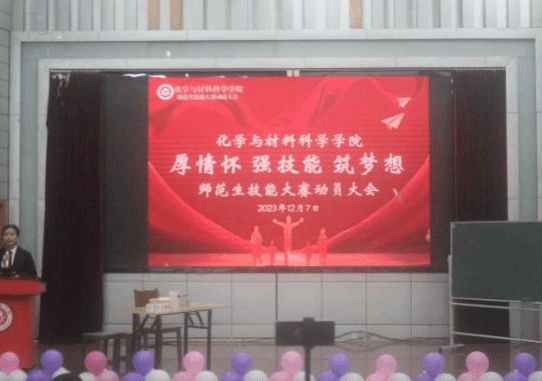 2023年12月7日晚,公司于太阳成集团122ccvip西校区模拟法庭举办师范生技能大赛动员大会,衡阳市成章实验中学化学教研组组长邹高告及唐清、李娟、陈畅畅三位老师特邀出席,公司党总支书记刘梦琴、经理许志锋、党总支副书记阳曼、副经理付伟伟、孙俊彬、学工办主任唐升、毛芳芳老师出席活动现场,公司全体2021级化学师范专业员工现场聆听。