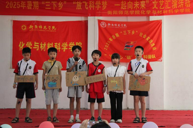 2025年7月6日-15日,太阳成集团122ccvip暑期“三下乡” 主队 “铜”心“碳”索科普队及分队“锌”火筑梦科普队,分别在衡南县近尾洲联合中心小学和蒸市中学开展了十天的科学启蒙训练营系列活动。53名衡师学子在3名指导教师的带领下,将实验室“搬”进乡村课堂,有趣的化学实验为乡村孩子们打开了探索科学世界的大门。