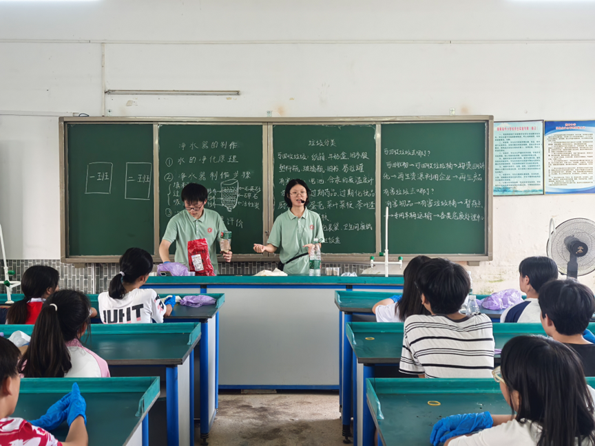 活动伊始,科普队以制作简易净水器为切入点,巧妙地引出环保话题。从日常生活中对清洁水源的需求出发,队员们向同学们阐述了净水器的工作原理,激发了同学们对环保知识的浓厚兴趣。随后,队员们围绕垃圾分类展开了全面而深入的讲解,细致解答了可回收垃圾和有害垃圾的最终去向等关键问题,引导同学们认识到垃圾分类对于环境保护的重要意义。