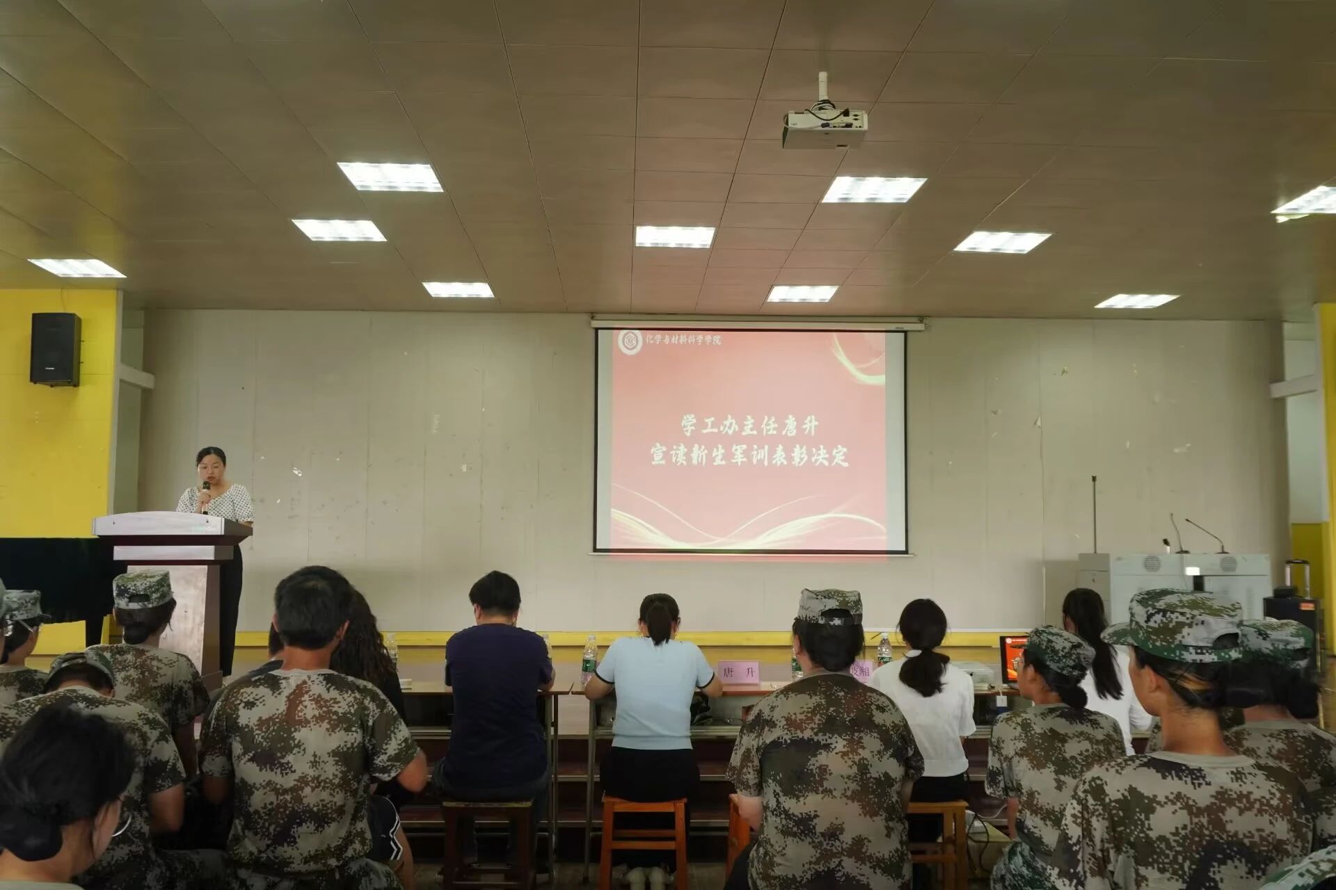 国歌奏唱后,唐升老师宣读了《2024年新生军训表彰决定》。公司领导和老师为叠被子大赛获奖选手、优秀军训学员、内务管理优秀宿舍、内务标兵宿舍、军训先进个人和优秀教官颁发了荣誉奖项。
